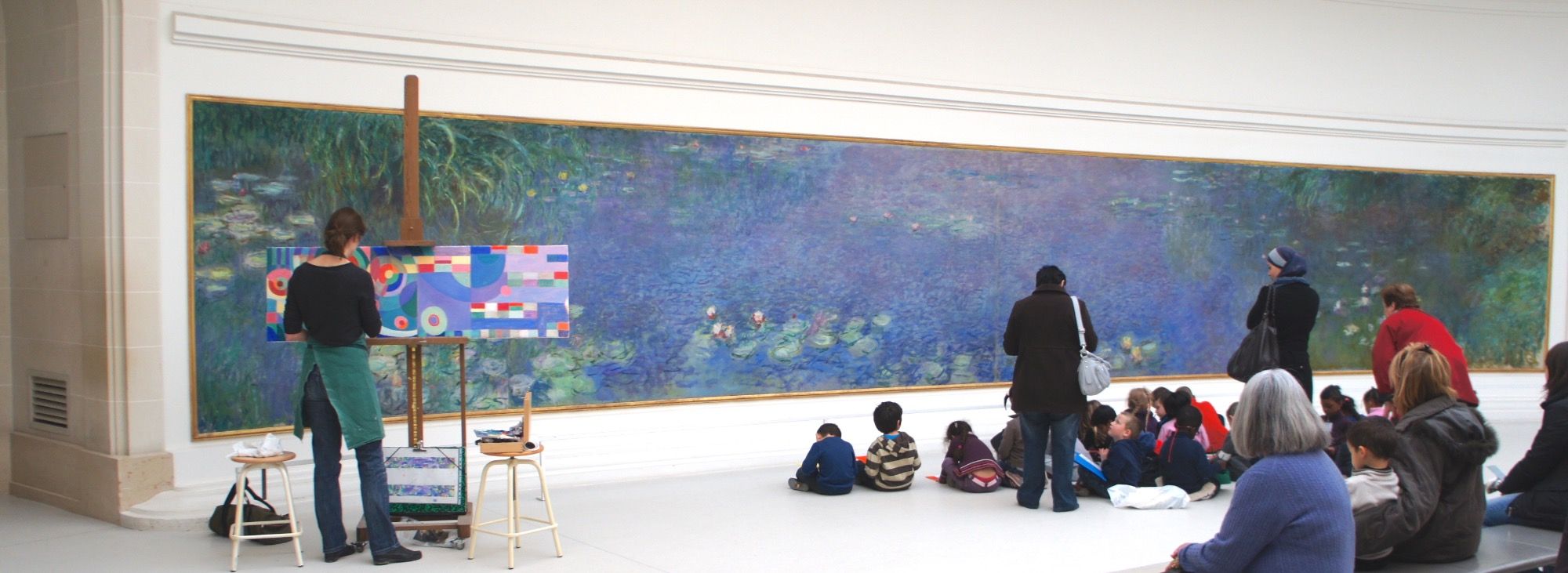 - how the works were produced at the Musée de l'Orangerie between 2010 and 2012, the dyptic paintings are transported on a easel to the annex of the first oval room, visiting school groups, etc...